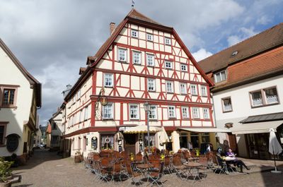 Doppelhaus mit Halbwalm, Fachwerk, 16./17. Jahrhundert; Ausleger, 19. Jahrhundert