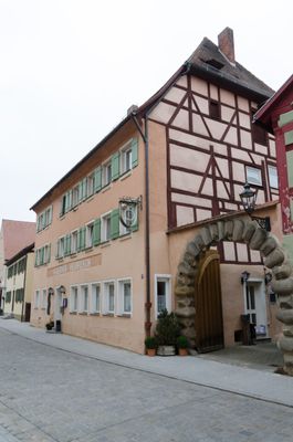 Gasthof, dreigeschossiges traufständiges Gebäude mit Halbwalmdach, seitlich Fachwerkobergeschoss, mit Laubengang, im Kern um 1500, Veränderungen 1621/23 (dendrochronologisch datiert) und 1852 (dendrochronologisch datiert)