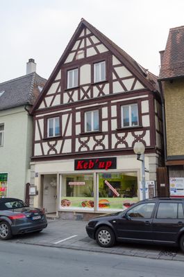 Wohnhaus, zweigeschossiger, giebelständiger Fachwerkbau, Erdgeschoss entkernt, frühes 18. Jahrhundert