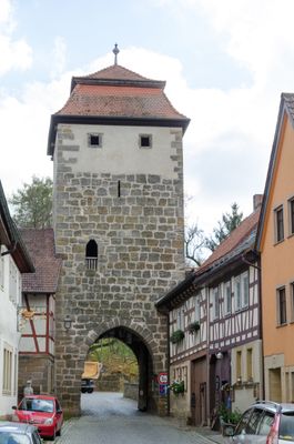 Geiersberger Torturm, viergeschossiger Sandsteinquaderbau, 1343, 1551 aufgestockt, Mansarddach des 18. Jahrhunderts; an der östlichen Wand der Durchfahrt Sandsteinrelief mit Kreuzgruppe, bez. 1343