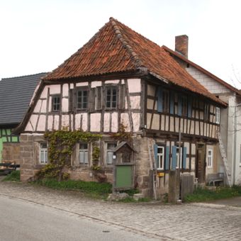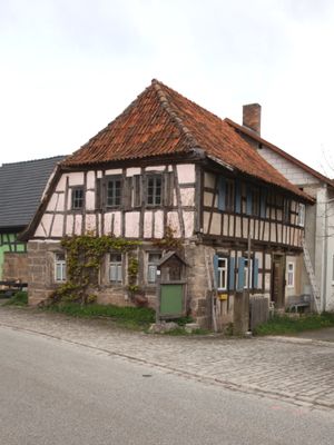 Abgewalmtes Frackdachhaus, Fachwerkobergeschoss, 18. Jahrhundert