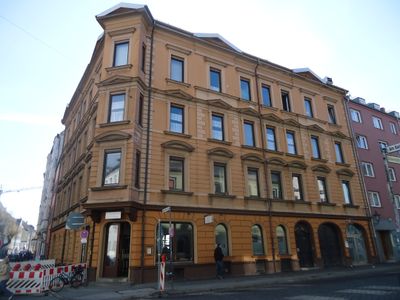 Mietshaus, viergeschossiger Eckbau in spätklassizistischen Formen, Ende 19. Jahrhundert