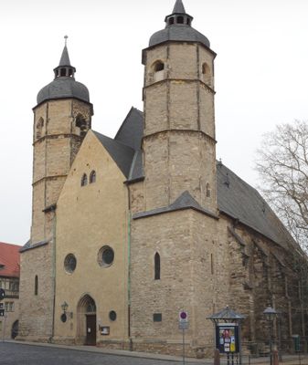 Die St.-Andreas-Kirche ist ein Gotteshaus im Spätgotischen Stil in Lutherstadt Eisleben und zeigt eine dreischiffige Halle mit zwei Türmen, die von Zwiebeldächern gekrönt werden. Das Bauwerk verbindet den massiven Westgiebel mit einem fein strukturierten Innenraum, in dem Säulen und Gewölbe das Raumgefühl prägen.