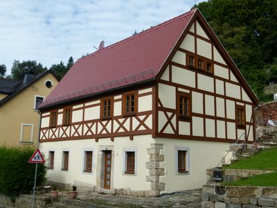 Wohnhaus in offener Bebauung Lohmener Straße 9, ländliches Wohnhaus, Obergeschoss Fachwerk mit Andreaskreuzen, baugeschichtlich und hausgeschichtlich von Bedeutung