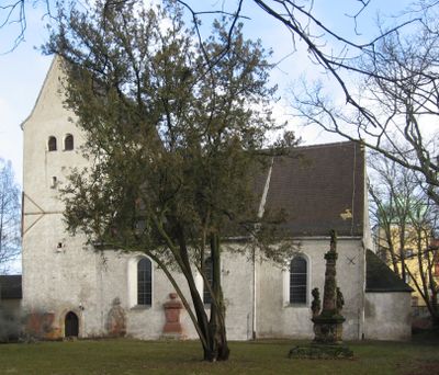 Kirche Gundorfer Kirchweg 2, Kirche mit Ausstattung und barocken Grabsteinen sowie Kirchhof mit Einfriedung und einem Kriegerdenkmal (1870/71)