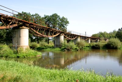 Eisenbahnbrücke in Stahl-Fachwerk-Konstruktion Görlitzer Straße, Landschaftsbildprägende Fischbauchträgerbrücke, eisenbahngeschichtlich und technikgeschichtlich von Bedeutung sowie von Seltenheitswert. Eisenbahnbrücke der Bahnstrecke Lubsko–Bad Muskau (Streckenkilometer 0,445), führt in langgestreckter Kurv