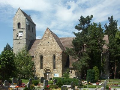 Kirche sowie ein Grabstein für Johann August Schmidt und zwei Grufthäuser auf dem Kirchhof Schulstraße -, In der alten Ortslage Hohenlohe, ein romanischer Kernbau mit Westriegel und Querhaus, zum Teil gotische Fenster, romanisches Säulenportal, späthistoristische Grufthäuser, baugeschichtlich, landes- und ortsgeschichtlich, künstlerisch und ortsbildp
