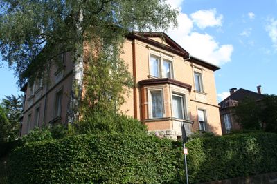 Baudenkmal D-4-63-000-738 in Coburg im Ortsteil Coburg, Villa, zweigeschossiges Walmdachgebäude mit übergiebeltem Risalit und Erker, Holzlaube, Ziegel mit Sandsteingliederungen, klassizisierend, von Johannes Köhler, 1893.
