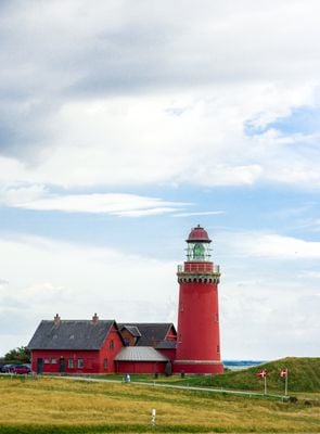 Der rote Ziegelsteinleuchtturm ragt 26 Meter auf einer 41 Meter hohen Klippe empor und bietet Sicht für die Seenavigation in der Nordsee.