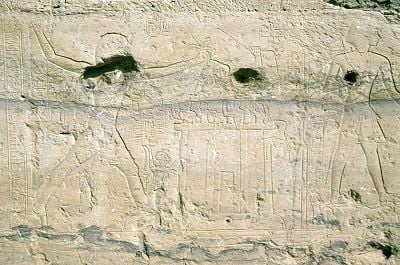 Die Tempelwände zeigen zahlreiche Inschriften von Kaisern und Pharaonen in Interaktion mit ägyptischen Göttern, einschließlich der nubischen Sonnengottheit Mandulis.