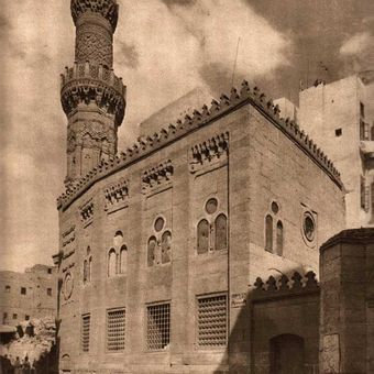 Das Minarett enthält das einzige osmanische Inschriftenband von 1623 an einem Minarett in Kairo, mit einem achteckigen Grundriss.