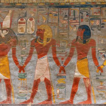 Die Wandmalereien im Inneren zeigen ägyptische Vorstellungen vom Jenseits, mit Szenen, die den Pharao auf seiner Reise durch die Unterwelt begleiten. Diese Bilder dienten als visueller Führer für den Verstorbenen durch die verschiedenen Phasen des Afterlife.