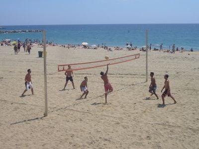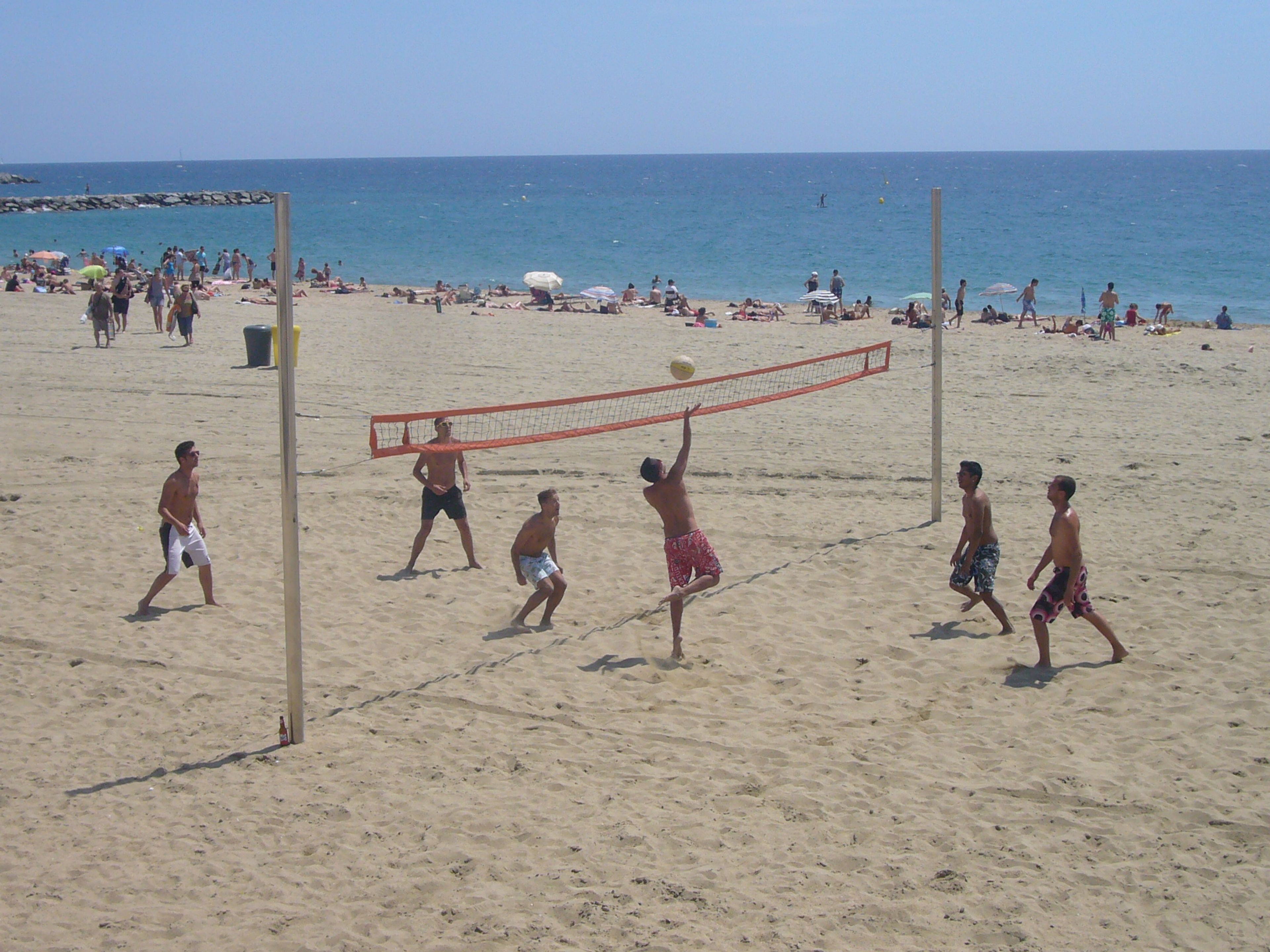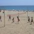 Ein permanentes Volleyballfeld markiert den zentralen Punkt des Strandes, während die umgebende Fläche rauchfrei bleibt.