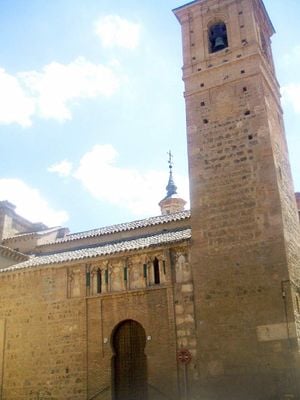 Die Sankt-Andreas-Kirche vereint gotischen und Mudéjar-Stil mit Ziegelwänden, Steinfundamenten und detaillierten Holzelementen in ihrer Konstruktion.