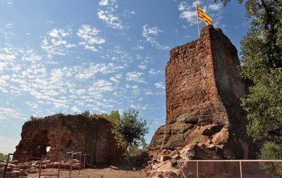Castell de Cervelló ist ein mittelalterliches Schloss, das auf einem Hügel in den Ordal-Bergen liegt und eine polygonale Grundform mit rötlichen Steinmauern aufweist. Das Bauwerk wird durch einen trapezförmigen Turm geprägt und war ein wichtiges Verteidigungssystem der Gegend.