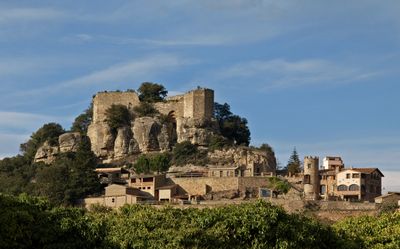 Die Castell de Granera ist eine Burganlage auf einem Felssporn in der Provinz Barcelona, die sich dem felsigen Gelande anpasst. Das Bauwerk zeigt romanische Merkmale mit Mauern aus regelmassigen Steinbloecken und Moertelverbindungen, die in das Plateau hineingebaut wurden.