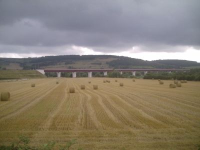 Reisende in Hochgeschwindigkeitszügen erleben unterbrechungsfreie Fahrten über das Viadukt, das als wichtige Verbindung im Schienennetz dient.