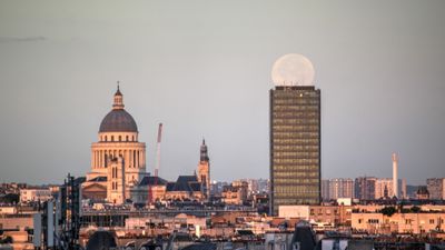 Der Turm erhebt sich aus einem rasterförmigen Campus, der auf dem ehemaligen Standort von Napoleon Bonapartes Weinmarkt errichtet wurde.