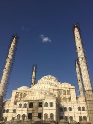 Die Große Makki Moschee verfügt über 52 Kuppeln und vier Minarette, wobei die zentrale Kuppel 46 Meter und die Minarette 92 Meter erreichen.