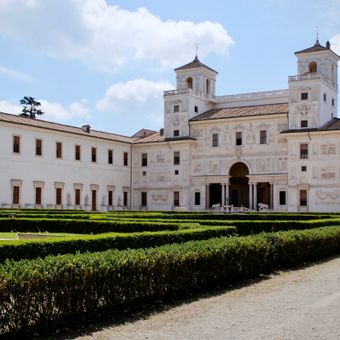 Die Villa Medici ist eine Residenz aus dem 16. Jahrhundert auf dem Pincio-Hügel in Rom, die als Sitz der französischen Akademie dient. Der rechteckige Garten gliedert sich in sechzehn Beete mit Hecken, antiken Skulpturen und Brunnen, die zwischen den Pflanzungen verteilt sind.