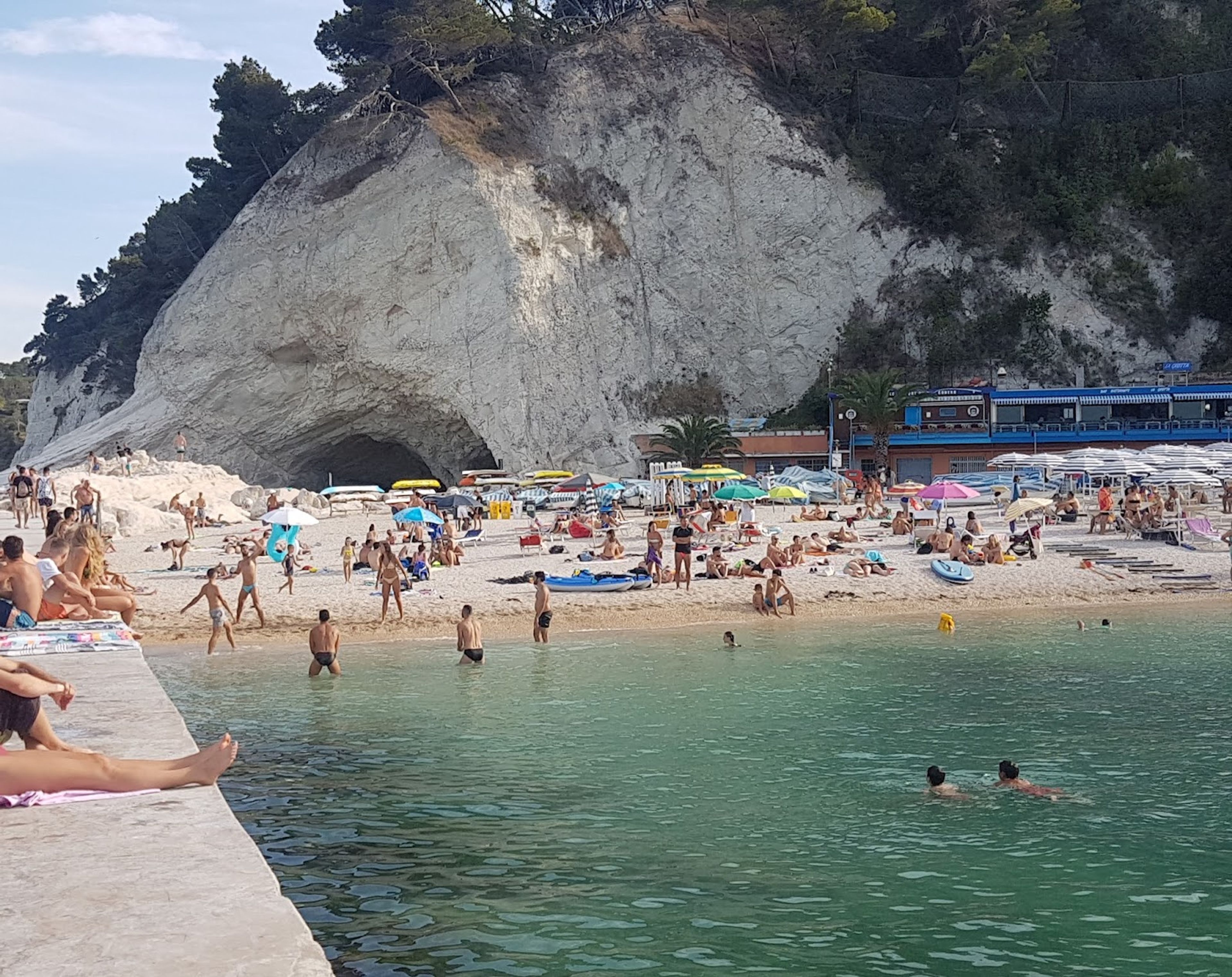 Besucher erreichen den Strand über einen kostenlosen Shuttleservice von Sirolo oder über markierte Wanderwege von den Parkplätzen aus.