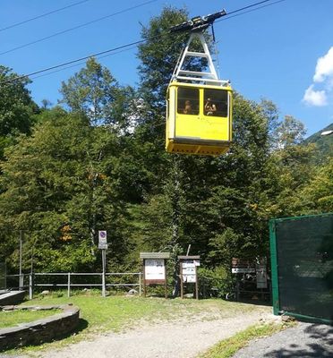 Die Seilbahn Monteviasco verbindet Ponte di Piero auf 543 Metern mit Monteviasco auf 943 Metern und überspannt 981 Meter über das Veddasca-Tal.