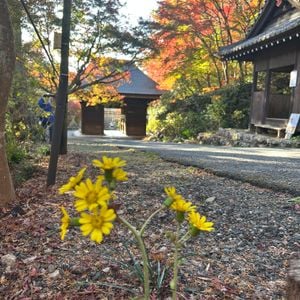 Die Tempelanlagen verfügen über Himalaya-Kirschbäume, die im Spätherbst und Winter rosa Blüten hervorbringen und mit dem Ahornlaub kontrastieren.