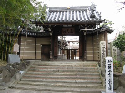 Der Tempel befindet sich in 1-12-7 Minami Sakurazuka in Toyonaka und weist traditionelle buddhistische Architekturelemente und Gartenwege für Besucher auf.