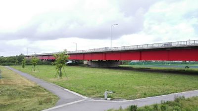 Die Konstruktion befindet sich zwischen zwei weiteren Übergängen: der Taihei-Brücke flussabwärts und der Aga-no-kakehashi flussaufwärts, die ein Trio von Flussverbindungen bilden.