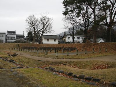 Takanashi clan fortified residence, Mittelalterliche befestigte Residenz in Nakano, Japan.