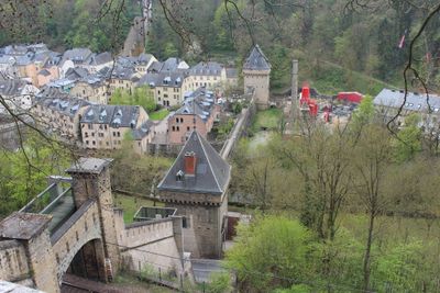 Die Türen im ersten Stock der Türme öffnen sich zu einem Wehrgang innerhalb der Schutzmauern über der Alzette.