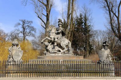 Die 4 Meter hohe Sandsteinskulptur zeigt König Johann III. Sobieski auf einem sich aufbäumenden Pferd, mit Kriegerrüstung und einem Kommandostab.