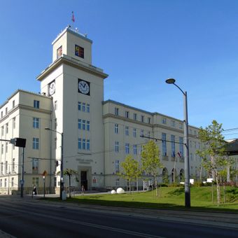 Das Rathaus befindet sich bei den Koordinaten 50.297655 Breite und 18.952988 Länge und dient weiterhin als administratives Hauptzentrum.