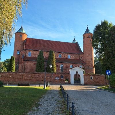 Saints Roch and John the Baptist church in Brochów ist ein Backsteinbau aus der Mitte des 16. Jahrhunderts mit drei markanten, runden Türmen. Das Innere zeigt drei Langschiffe mit gewölbten Decken und bemalten Kassettenmustern, während die Außenmauern in dem für diese Zeit charakteristischen roten Backstein errichtet sind.
