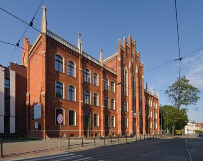 Paul Jakisch entwarf diese Bildungseinrichtung 1870, während einer Zeit bedeutender Entwicklung im institutionellen Bauwesen von Bytom.