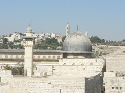 Die Al-Aqsa-Moschee mit ihrer silbernen Kuppel erstreckt sich über 144.000 Quadratmeter und enthält 200 Monumente, einschließlich des Felsendoms und vier Minarette.