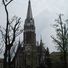 Die Lutherische Kirche steht mit roten Backsteinmauern und neugotischen Elementen, einschließlich mehrerer Türme und großer Glasfenster.