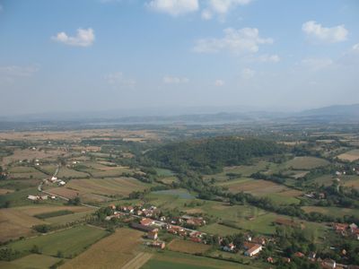 Der künstliche See erstreckt sich über 9,34 Quadratkilometer und fasst 65 Millionen Kubikmeter Wasser, entstanden durch die Aufstauung des Gruža-Flusses.