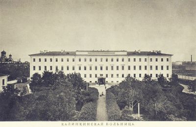 Das Kalinkinskaya-Krankenhaus steht als medizinische Einrichtung mit architektonischen Elementen, die die historischen Bauweisen Sankt Petersburgs widerspiegeln.