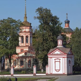 Die Kirche der Erhöhung des Heiligen Kreuzes steht an der Altufyevskoye-Straße und zeigt aufwendige Verzierungen und architektonische Elemente des russischen Barocks.
