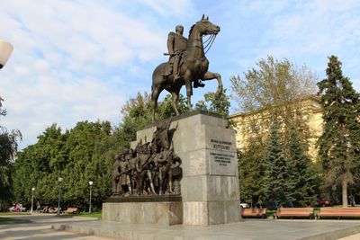 Jede der 26 Bronzefiguren trägt Gesichtszüge, die tatsächlichen historischen Personen ähneln, darunter Bagration und Yermolov. Diese Details machen das Denkmal zu einem Porträtgalerie der Militärführer aus einer entscheidenden Zeit.