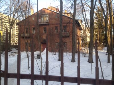 Das Gebäude steht an einer zugänglichen Stelle in Perovo und bleibt aktiv als Wohnhaus genutzt, weshalb es von außen zu sehen ist, aber der Innenhof respektvoll behandelt werden sollte. Ein Besuch ist am besten tagsüber möglich, um die architektonischen Details der roten Backsteinfront und der Fenster deutlich zu erkennen.