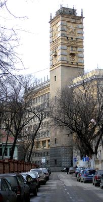 Zwischen 1934 und 1938 unter der Leitung des Architekten Lew Rudnew erbaut, diente dieser Verwaltungskomplex als Hauptquartier des Volkskommissariats für Militärangelegenheiten.