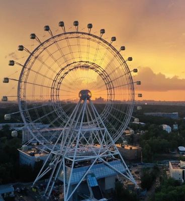 Im VDNKh gelegen, einem Zentrum russischer Errungenschaften, verkörpert das Rad modernen Ingenieursfortschritt bei gleichzeitiger Verbindung zu nationalen Traditionen.