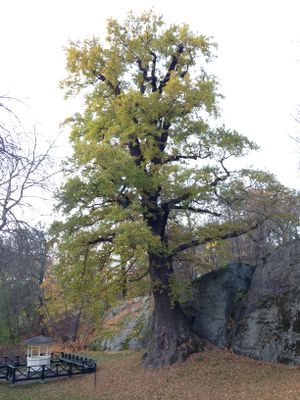 Die Eiche ist 21 Meter hoch mit einem Stammumfang von 9,2 Metern und gilt als größte lebende Eiche in Stockholm.