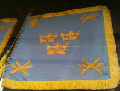 Das Regiment erhielt 1942 seine Militärstandarte von König Gustaf V und führte ein Wappen mit Sankt Erik, Kanonenrohren und Flügeln.
