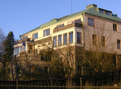 Das Hauptgebäude liegt nahe der Thielska Galleriet in Blockhusudden, erstreckt sich über etwa 1.000 Quadratmeter und umfasst Personalunterkünfte mit Garage.