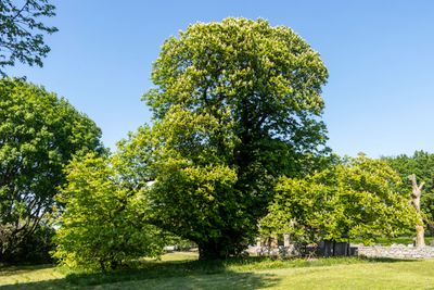 Zweistämmiger Kastanienbaum, Naturdenkmal auf Gotland, Schweden