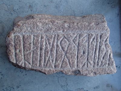 Während des Abrisses eines Ofens im Jahr 1962 entdeckten Arbeiter diese protonordische Inschrift, die Text im Elder-Futhark-Alphabet enthält.