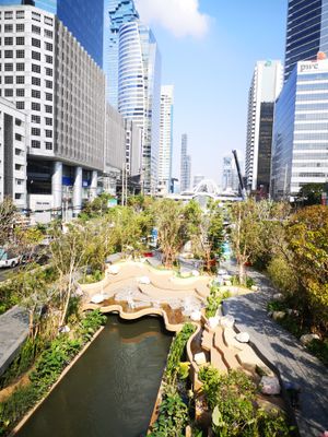 Khlong Chong Nonsi Public Park ist eine Grünanlage, die sich entlang eines Wasserkanals durch mehrere Stadtteile erstreckt und verschiedene Bereiche mit Gehwegen, Sitzplätzen und Grünflächen verbindet. Das Layout folgt dem natürlichen Verlauf des Kanals mit unterschiedlich gestalteten Zonen, die Raum zum Gehen und zum Verweilen bieten.